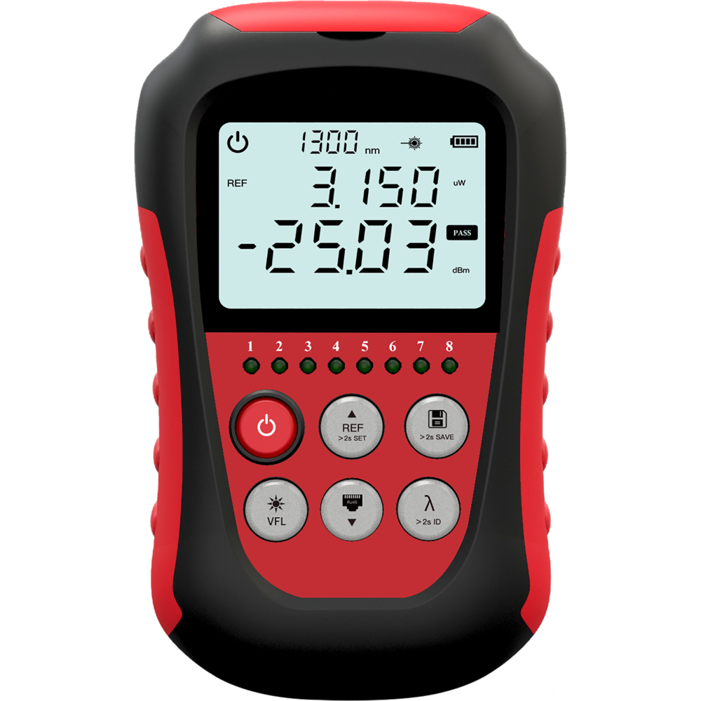 The NK270 Optical Power Meter and Red Light Source Combo Series utilizes a single-chip microprocessor for control, offering comprehensive functionality. With embedded detectors and lasers for enhanced protection, the device features 10 standard wavelengths including 1270nm/1577nm. It also includes frequency identification, wavelength identification, three red light modes (CW/1Hz/2Hz) with auto-off, backlight display, wavelength memory, user calibration, illumination, and supports RJ45 network cable sequencing and cable tracing. It boasts a wide testing range and high accuracy.